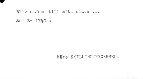 //// Sliv o Jesu till mitt sista ... //// Se: Zz 1740 a //// KB:s SKILLINGTRYCKSREG. //// ... ..... j ////