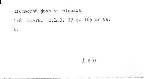 //// Blommorna §ava vi plockat //// 1:8 KB-PE. S.L.S. 57 s. 165 nr 84. //// N. //// ÅBO ////