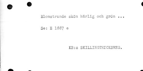 //// Blomstrande skön härlig och grön ... //// Se: E 1867 e //// KB:s SKILLINGTRYCKSREG. ////