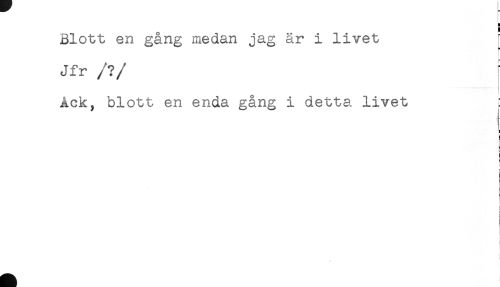 //// Blott en gång medan jag är i livet //// Jfr /?/ f //// Ack, blott en enda gång i detta livet j //// i //// i //// ) //// ! //// ! //// ! //// ] ////