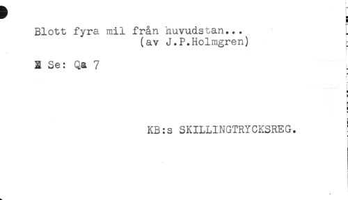//// Blott fyra mil från huvudstan... L //// (av J.P.Holmgren) ^ //// N Se: Qa 7 . //// r //// L //// = //// k //// jj //// KB:s SKILLINGTRYCKSREG. ! //// S ////