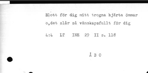 //// f //// Blott för dig mitt trogna hjärta ömmar //// * ... - ^ . -. //// o,det slår så vänskapsfullt för dig //// 4:4 LT INE 29 II s-. 118 //// ^ ÅBO ////