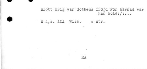 //// Blott krig var Götkens fröjd För härnad var //// han böld:/:... //// ^ B 4^s. 101 Wisa. 4 str. //// t ' //// ' * . . //// ! ////