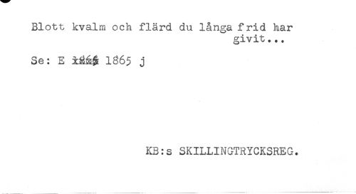 //// Blott kvalm och flärd du långa frid har //// givit... //// Se: E 186$ j //// KB:s SKILLINGTRYCKSREG. ////