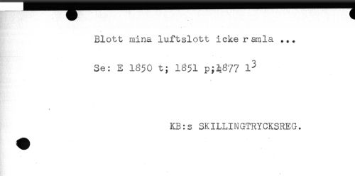 //// Blott mina luftslott icke ramla ... //// -* * //// Se: E 1850 t; I85I p;M'?7 //// KB:s SKILLINGTRYCKSREG. //// * ////