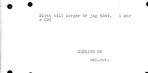 //// Blott till sorger är jag dömd. 1 str //// s 025 //// SC-DLING MS //// mel.not. ////