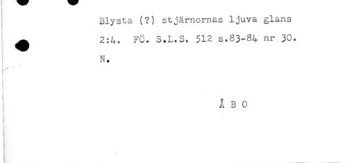 //// Blysta (?) stjärnornas ljuva glans //// ! //// ^ 2:4. FÖ. S.L.S. 512 s.83-84 nr 30. //// N. //// 1 //// i ÅBO ////