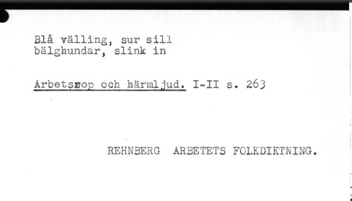 //// Blå välling, sur sill //// bälghundar, slink in //// ÅrbetsBop och härmljud. 1-11 s. 263 //// i //// i //// < //// REHNBERG ARBETETS FOLKDIKTNING. //// i //// a ////