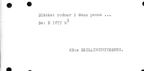 //// Bläcket rodnar i dess penna ... //// Se: E 1377 b^ //// * //// KB:s SKILLINGTRYCKSREG. ////
