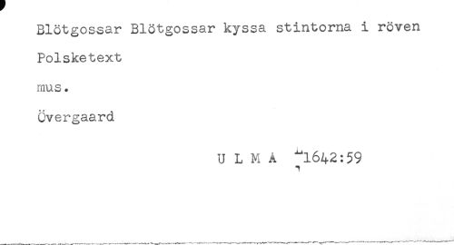 //// Blötgossar Blötgossar kyssa stmtorna i roven //// Polsketext //// mus. //// övergaard //// U L M A ^1642:59 //// i ////