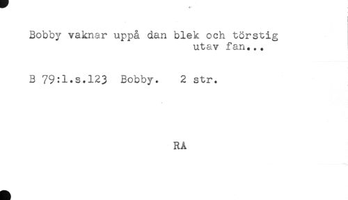 //// Bobby vaknar uppå dan blek och törstig //// utav fan... //// B 79:1.s.123 Bobby. 2 str. //// RÅ ////