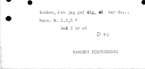 //// Bocken, den jag gaf dig, åå har du... //// j //// i //// ^ Muns. W. 1.5,6 ? //// i //// j Deå I nr 46 //// ! ; - //// RANCKEN FÖRTECKNING ////