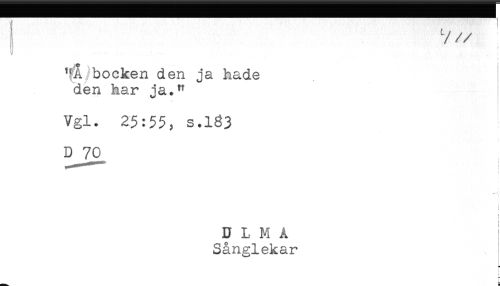 //// < //// ^Fbocken den ja hade //// den har ja." //// Vgl. 25:55, s.133 //// D 70 //// i //// F //// L- ////