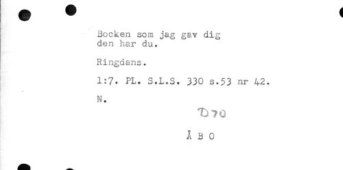 //// Bocken som jag gav dig //// den har du. //// Ringdans. //// 1:7. PL. S.L.S* 330 s.53 nr 42. //// N. ////