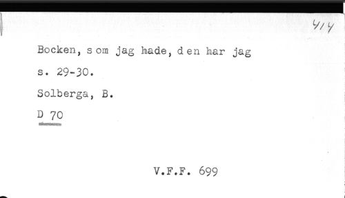 //// Bocken, som jag hade, den har jag //// s. 29-30. //// Solberga, B. //// DJ70 //// ! //// t //// t //// t //// ! //// <* //// V.F.F. 699 //// t //// < //// 1- //// B ////