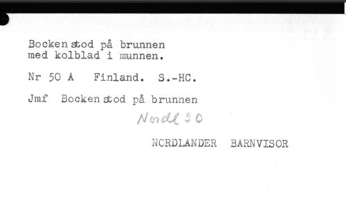 //// Bockensbod på brunnen //// med kolblad i munnen. //// Nr 50 Å Finland. S.-HC. //// Jmf Bockensbod på brunnen //// NORDLÄNDER BARNVISOR ////