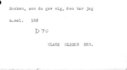 //// Bocken, som du gav mig, den har jag //// m.mel. 168 //// OLAUS OLSSON REG. //// ... ...... ^ _ _ _ j ////