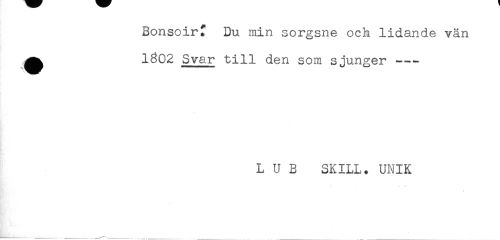 //// Bonsoir" Du min sorgsne och lidande vän //// ^ 1802 Svar till den som sjunger --- //// L U B SKILL. UNIK ////