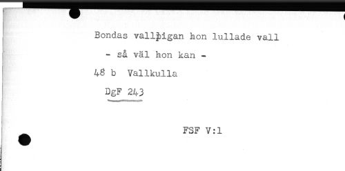 //// Bondas vallpigan hon lullade vall //// - så väl hon kan - //// 43 b Vallkulla //// DgF 243 //// ! //// ^ FSF V:1 ////