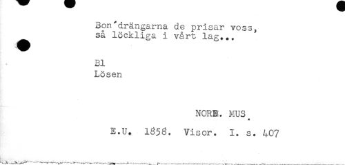 //// Bonddrängarna de prisar voss, //// ^ så löckliga i vårt lag... //// Bl //// Lösen //// NORB:. MUS //// E.U. 1353. Visor. 1. s. 407 //// ——... —. ——^---,—___ ___ ////