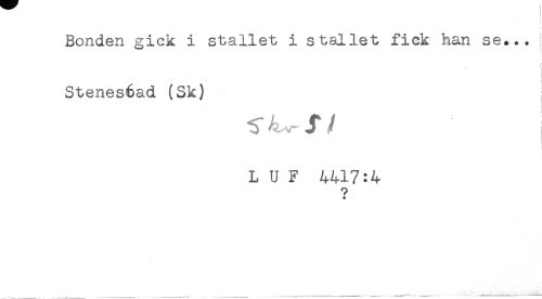 //// Bonden gick i stallet i stallet fick han se... ' //// Steneséad (Sk) //// i //// /L U F 4417:4 //// ? //// * ////