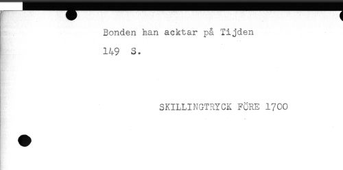 //// ^ 1 //// Bonden han acktar på Tijden //// 149 S. //// . //// SKILLINGTRYCK FCRE 1700 ////
