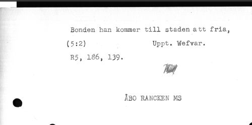 //// Bonden han kommer till staden att fria, //// (5:2) Uppt. Wefvar. //// R5, 186, 139. //// . //// ^ ÅBO RANCKEN MS ////