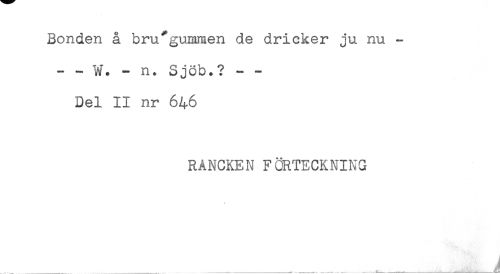 //// Bonden å brudgummen de dricker ju nu - //// - - W. - n. Sjöb.? - - //// Del II nr 646 //// RANCKEN FÖRTECKNING //// __ __ ___ . ^____ ^ ////