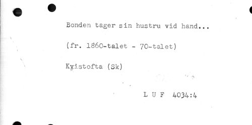 //// ( //// Bonden tager sin hustru vid hand... //// (fr. 1860-talet - 70-talet) //// . //// \ //// I Kyistofta (Sk) //// i //// t* //// ' * //// L U F 4034:4 ////