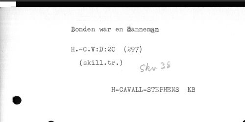 //// Bonden war en Bannemgn //// H.-C.V:D:20 (297) //// " //// (skill.tr.) //// H-CAVÅLL-STEPHENS KB //// _ ////
