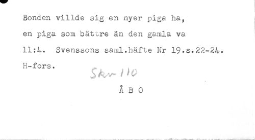 //// Bonden villde sig en nyer piga ha, i //// en piga som bättre än den gamla va //// 11:4* Svenssons saml.häfte Nr 19.s.22-24. //// H-fors. //// ÅBO ////