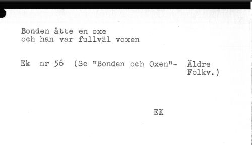 //// Bonden åtte en oxe //// och han var fullväl voxen //// ! //// Ek nr $6 (Se "Bonden och Oxen"- Äldre //// Folkv.) //// I //// EK //// . //// i //// i //// i //// i //// < //// i //// ! //// i ////