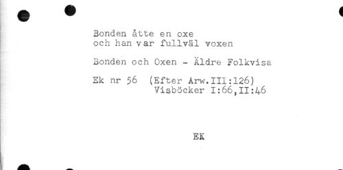//// Bonden åtte en oxe //// och han var fullväl voxen //// Bonden och Oxen - Äldre Folkvisa //// Ek nr 56 (Efter Arw.111:126) //// Visböcker 1:66,11:46 //// EK ////