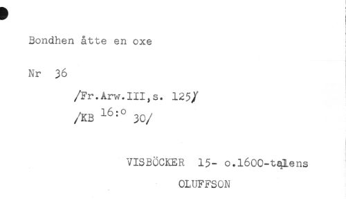 //// Bondhen åtte en oxe //// < //// i //// i //// Nr 36 //// /Fr.Arw.III,s. 125 //// //KB 30 //// /VISBÖCKER 15- o.léOO-tQlens //// OLUFFSON ////