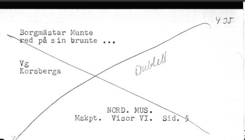 //// i //// t //// Borgmästar Munte //// 'på s in brunte ... //// Vg ' //// Korsberga //// NORD. //// / Mskpt. Visor VI. ////