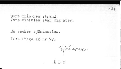 //// Bort från d en strand //// Vars min(n)en står mig åter. //// i //// En vacker sjömansvisa. //// 10:4 Brage 12 nr 77. ////