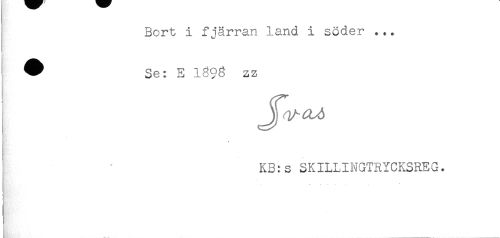 //// Bort i fjärran land i söder ... //// ^ Se: E 1393 zz //// . //// KB:s SKILLINGTRYCKSREG. //// . //// . //// ) //// t //// _____ ___ ////