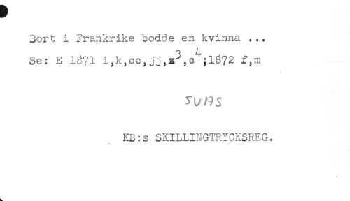 //// Bort i Frankrike bodde en kvinna ... //// i 4 //// Se: E 1671 i,k,cc,jj,x^,c';l872 f,m //// KB:s SKILLINGTRYCKSREG. //// < ////
