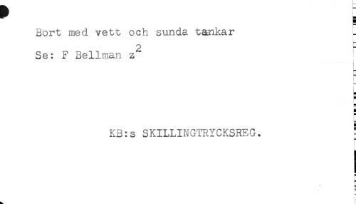 //// H //// Bort med vett och sunda tankar L //// 2 //// Se: F Bellman z //// ! //// - //// [ //// KB:s SKILLINGTRYCKSREG. * //// * = //// r* ////