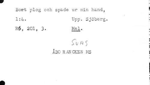 //// Bo&t plog och spade ur min hand, ! //// < //// 1:4- Upp. Sjöberg. i //// i //// R$, 201, 3. Mel. ; //// ; //// ÅBO RANCKEN MS ] //// < //// I //// t //// H ////