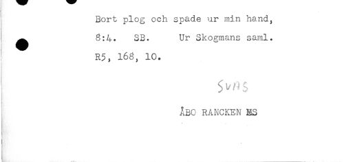 //// Bort plog och spade ur min hand, //// ^ 8:4. SB< Ur Skogmans saml. //// ^ R5, 168, 10. //// ÅBO RANCKEN MS //// < ////