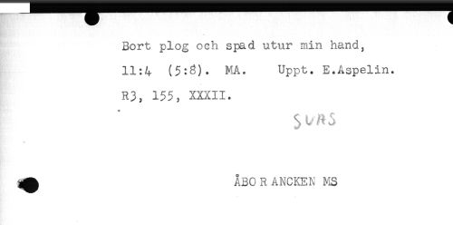 //// i/ ^ //// Bort plog och spad utur min hand, //// 11:4 (5:3). MÅ. Uppt. E.Aspelin. //// R3, 155, XXXII. //// ^ ÅBO RANCKEN MS ////