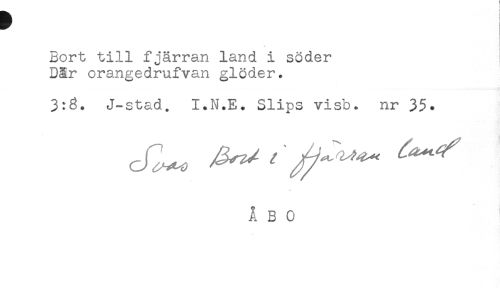 //// Bort till fjärran land i söder //// Dår orangedrufvan glöder. //// 3:3. J-stad. I.N.E. Slips visb. nr 35. //// ÅBO ////