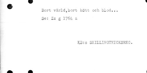 //// Bort värld,bort kött och blod... //// Se: Zz g 1764 a //// KB:s SKILLINGTRYCKSREG. ////
