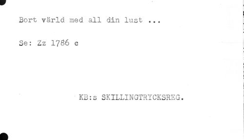 //// ! //// Bort värld med all din lust ... //// 5 //// Se: Zz 1786 c //// i //// : //// ! //// t //// i //// i //// KB:s SKILLINGTRYCKSREG. ////