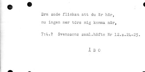 //// Bra sade flickan att du är här, //// nu ingen mer törs mig komma när, //// 7:4.? Svenssons saml.häfte Nr 12.s.24-2$. //// ÅBO ////