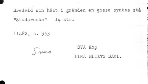 //// Bredvid sin häst i gränden en gosse syntes stå ^ //// "Stadsresan" 14 str. //// i //// i //// 11482, s. 953 //// SVÄ Kop f //// ULI^IÅ BLIXTS SAML. //// i //// i //// * //// < ////