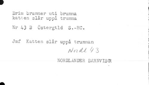 //// Brirn brummer uti brumma //// katten slår uppå trumma //// t //// Nr 43 B Östergtld S.-HC. //// Jmf Katten slår uppå trumman ! //// NORDLANDER BARNVIS (R ////