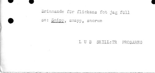 //// Brinnande for flickans fot jag föll //// ^ se: Snipp, snapp^ snorum //// L U B SKILL:TR PROSAREG //// ____ ___ ^ , ////