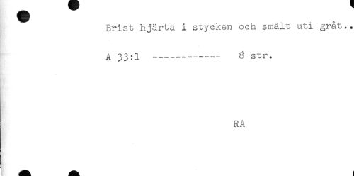 //// Brist hjärta i stycken och smält uti gråt.. //// A 33:1 ---- 8 str. //// RA ////
